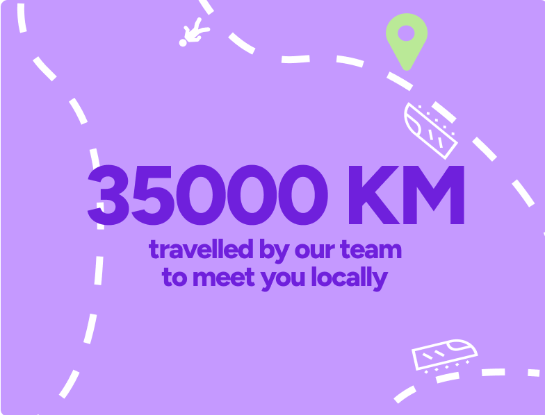 La majorité de ces 35 000 km ont été parcourus par nos équipes locales, dans leurs propres régions. Pour assister à des salons, organiser des événements et rencontrer les gens en personne.