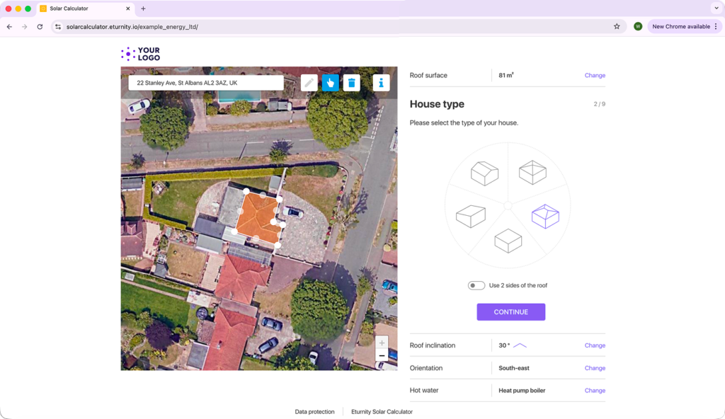 The solar calculator is highly customisable. As a fully white-labeled tool, you can make it look authentically your brand’s by including your logo, colours, font and pictures.